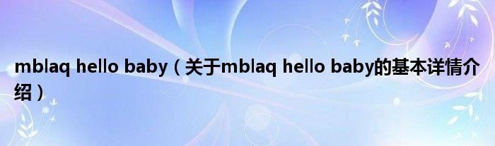 mblaq hello baby(关于mblaq hello baby的基本详情介绍)