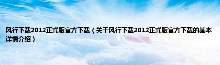 本文关于风行下载2012正式版官方下载的基本详情介绍就讲解完毕,希望对大家有所帮助。