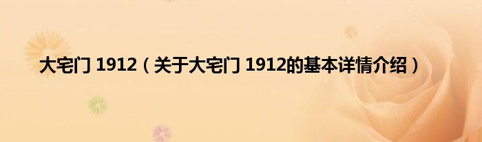 本文关于大宅门 1912的基本详情介绍就讲解完毕,希望对大家有所帮助。