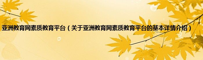 亚洲教育网素质教育平台(关于亚洲教育网素质教育平台的基本详情介绍)