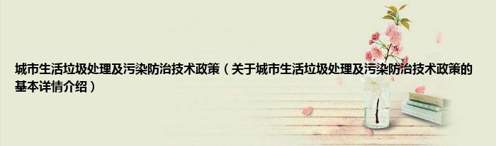 本文关于城市生活垃圾处理及污染防治技术政策的基本详情介绍就讲解完毕,希望对大家有所帮助。