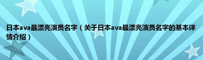 本文关于日本ava最漂亮演员名字的基本详情介绍就讲解完毕,希望对大家有所帮助。