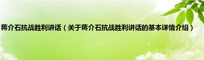 本文关于蒋介石抗战胜利讲话的基本详情介绍就讲解完毕,希望对大家有所帮助。