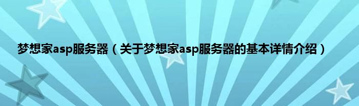 本文关于梦想家asp服务器的基本详情介绍就讲解完毕,希望对大家有所帮助。