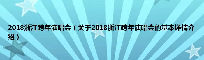 本文关于2018浙江跨年演唱会的基本详情介绍就讲解完毕,希望对大家有所帮助。