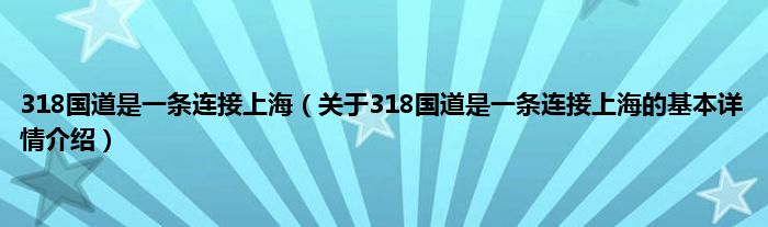 本文关于318国道是一条连接上海的基本详情介绍就讲解完毕,希望对大家有所帮助。