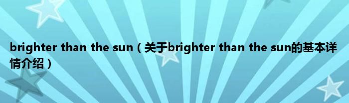 brighter than the sun(关于brighter than the sun的基本详情介绍)