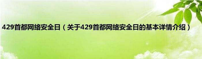 429首都网络安全日(关于429首都网络安全日的基本详情介绍)