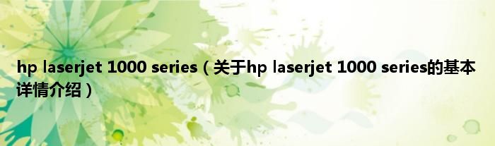 本文关于hp laserjet 1000 series的基本详情介绍就讲解完毕,希望对大家有所帮助。