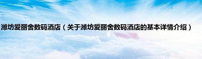 本文关于潍坊爱丽舍数码酒店的基本详情介绍就讲解完毕,希望对大家有所帮助。