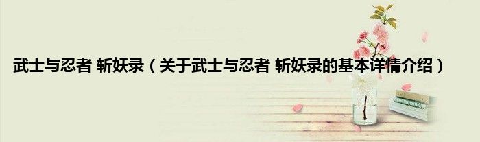 本文关于武士与忍者 斩妖录的基本详情介绍就讲解完毕,希望对大家有所帮助。