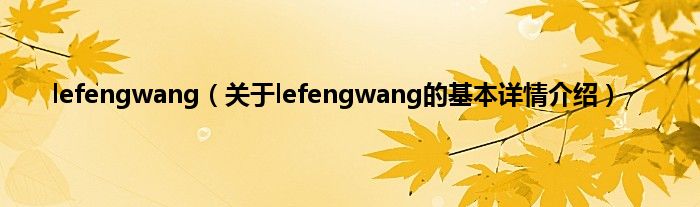 本文关于lefengwang的基本详情介绍就讲解完毕,希望对大家有所帮助。