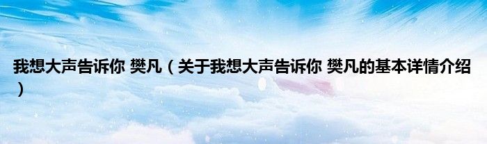 我想大声告诉你 樊凡(关于我想大声告诉你 樊凡的基本详情介绍)