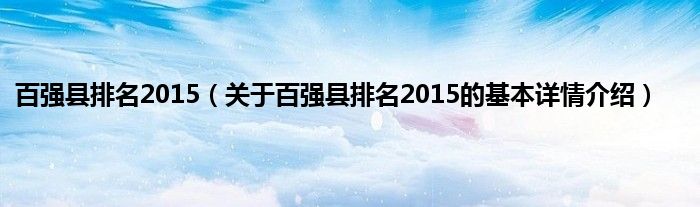 本文关于百强县排名2015的基本详情介绍就讲解完毕,希望对大家有所帮助。
