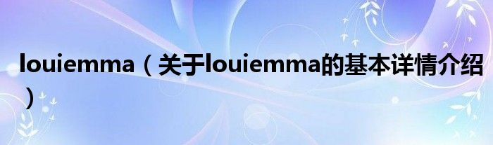 本文关于louiemma的基本详情介绍就讲解完毕,希望对大家有所帮助。