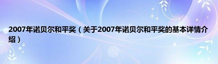 2007年诺贝尔和平奖(关于2007年诺贝尔和平奖的基本详情介绍)