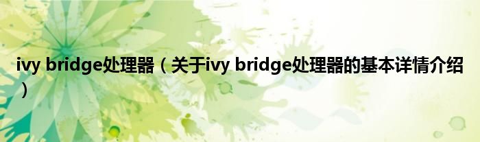 本文关于ivy bridge处理器的基本详情介绍就讲解完毕,希望对大家有所帮助。