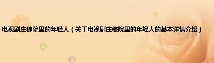 本文关于电视剧庄稼院里的年轻人的基本详情介绍就讲解完毕,希望对大家有所帮助。