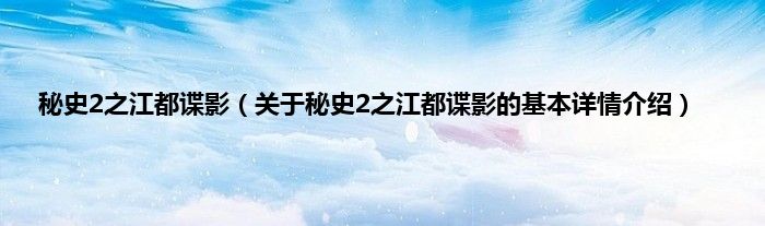 大家好我是小蝌蚪,秘史2之江都谍影,关于秘史2之江都谍影的基本详情介绍很多人还不知道,那么现在让我们一起来看看吧!