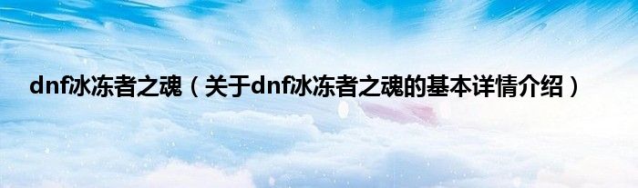 本文关于dnf冰冻者之魂的基本详情介绍就讲解完毕,希望对大家有所帮助。