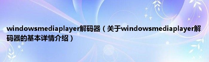 本文关于windowsmediaplayer解码器的基本详情介绍就讲解完毕,希望对大家有所帮助。