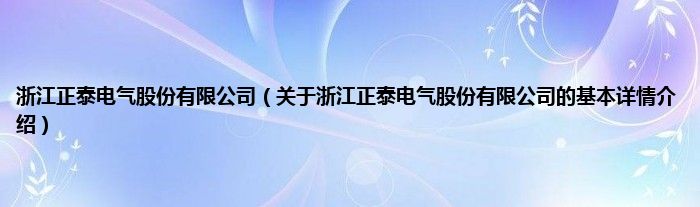本文关于浙江正泰电气股份有限公司的基本详情介绍就讲解完毕,希望对大家有所帮助。