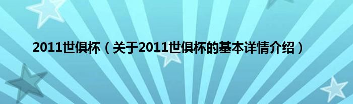 本文关于2011世俱杯的基本详情介绍就讲解完毕,希望对大家有所帮助。