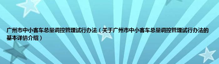 本文关于广州市中小客车总量调控管理试行办法的基本详情介绍就讲解完毕,希望对大家有所帮助。
