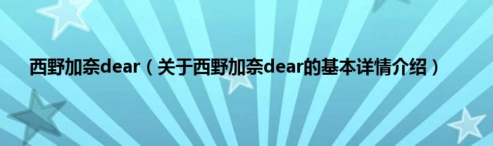 本文关于西野加奈dear的基本详情介绍就讲解完毕,希望对大家有所帮助。