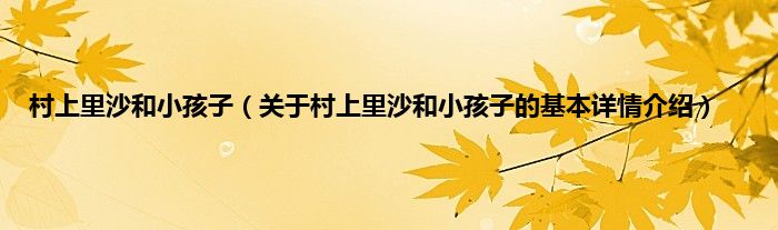 本文关于村上里沙和小孩子的基本详情介绍就讲解完毕,希望对大家有所帮助。