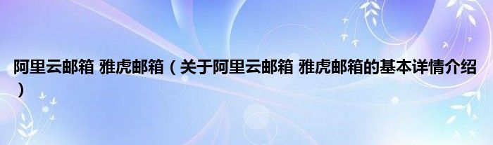 本文关于阿里云邮箱 雅虎邮箱的基本详情介绍就讲解完毕,希望对大家有所帮助。