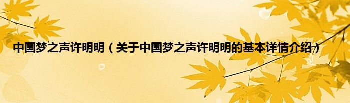 本文关于中国梦之声许明明的基本详情介绍就讲解完毕,希望对大家有所帮助。