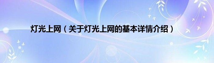 本文关于灯光上网的基本详情介绍就讲解完毕,希望对大家有所帮助。