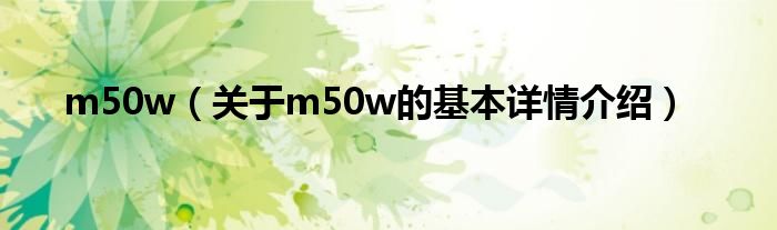本文关于m50w的基本详情介绍就讲解完毕,希望对大家有所帮助。
