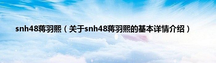 本文关于snh48蒋羽熙的基本详情介绍就讲解完毕,希望对大家有所帮助。