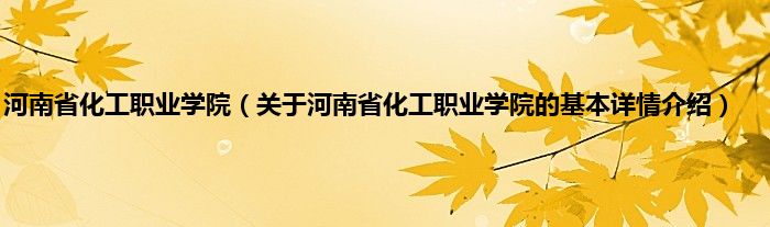 本文关于河南省化工职业学院的基本详情介绍就讲解完毕,希望对大家有所帮助。