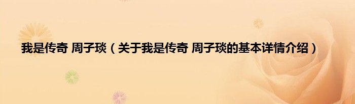 大家好我是小蝌蚪,我是传奇 周子琰,关于我是传奇 周子琰的基本详情介绍很多人还不知道,那么现在让我们一起来看看吧!