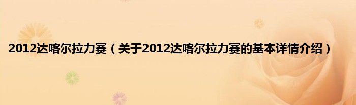 本文关于2012达喀尔拉力赛的基本详情介绍就讲解完毕,希望对大家有所帮助。