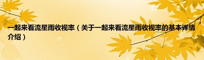 本文关于一起来看流星雨收视率的基本详情介绍就讲解完毕,希望对大家有所帮助。