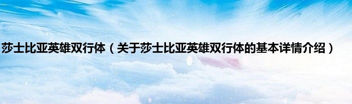 本文关于莎士比亚英雄双行体的基本详情介绍就讲解完毕,希望对大家有所帮助。