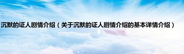 本文关于沉默的证人剧情介绍的基本详情介绍就讲解完毕,希望对大家有所帮助。