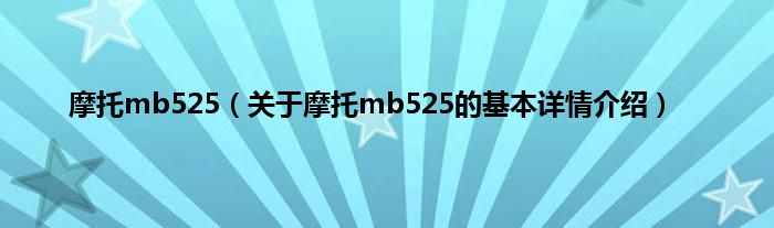本文关于摩托mb525的基本详情介绍就讲解完毕,希望对大家有所帮助。