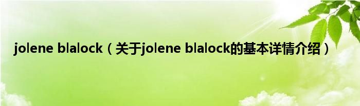 大家好我是小蝌蚪,jolene blalock,关于jolene blalock的基本详情介绍很多人还不知道,那么现在让我们一起来看看吧!