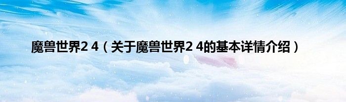本文关于魔兽世界2 4的基本详情介绍就讲解完毕,希望对大家有所帮助。