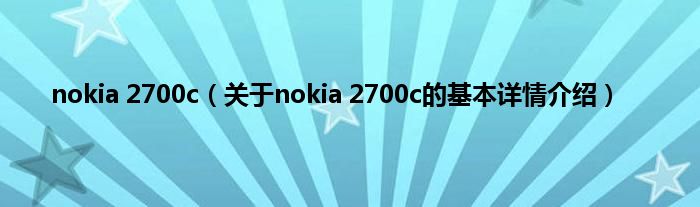 nokia 2700c(关于nokia 2700c的基本详情介绍)