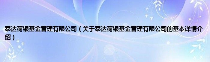 本文关于泰达荷银基金管理有限公司的基本详情介绍就讲解完毕,希望对大家有所帮助。
