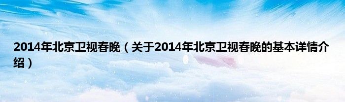 本文关于2014年北京卫视春晚的基本详情介绍就讲解完毕,希望对大家有所帮助。