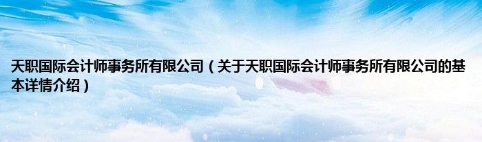 本文关于天职国际会计师事务所有限公司的基本详情介绍就讲解完毕,希望对大家有所帮助。