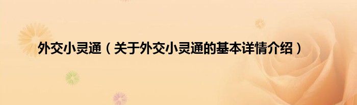外交小灵通(关于外交小灵通的基本详情介绍)