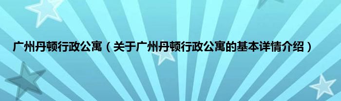 本文关于广州丹顿行政公寓的基本详情介绍就讲解完毕,希望对大家有所帮助。